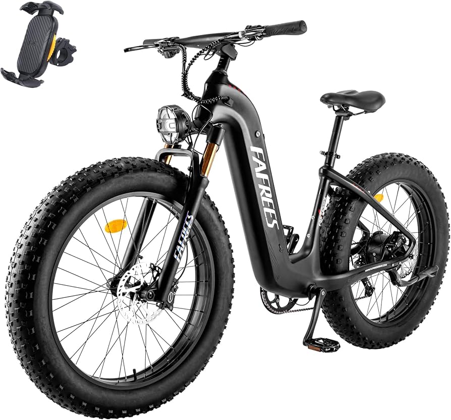 Mit dem Fafrees F26 Carbon präsentiert der Hersteller ein E-Bike der Extraklasse: Ein Rahmen aus Kohlefaser, breite 26″ × 4,8″ Fat-Reifen, ein starker 1000 W Motor (Spitzenleistung bis ca. 1200 W) und ein 48 V / 22,5 Ah Akku mit ca. 1.080 Wh Kapazität machen dieses Bike zu einem echten Statement-Modell.