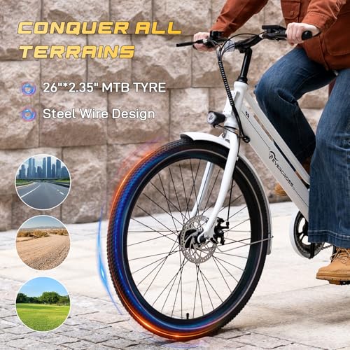 AUSGEZEICHNETES FAHRERLEBNIS: Ausgestattet mit pannensicheren 26 Zoll Luftreifen und weichem Kissen können Sie eine komfortable Fahrt genießen. Das Beleuchtungssystem und die Reflektoren sorgen für Sicherheit bei Nacht. Höhenverstellbarer Lenker (100-110cm) und Sitz (85-105cm) passen sich verschiedenen Fahrgewohnheiten und Personen mit einer Höhe von 160-195cm an.