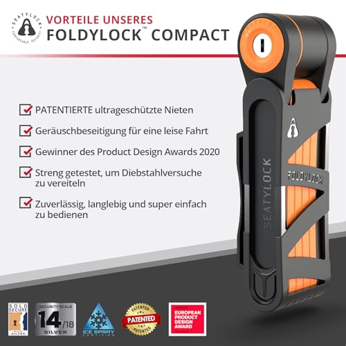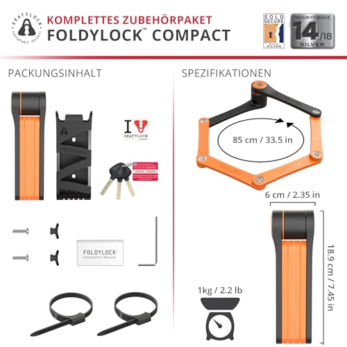 FoldyLock Compact Fahrrad Faltschloss – Patentiertes Testsieger Fahrradschloss mit Schlüssel und Halterung für Hohe Sicherheit – Leicht und Sicher für Ebike, e Scooter und Roller – 85 cm