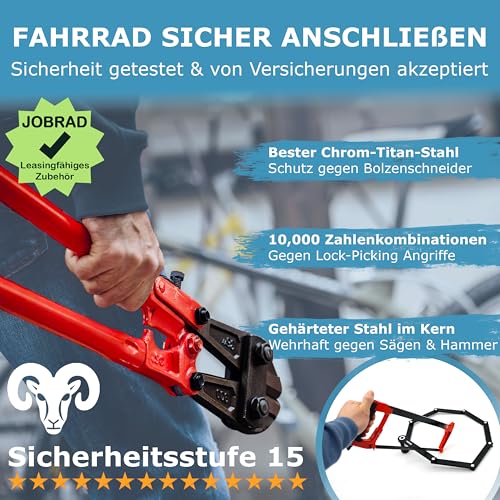 𝟭𝟮𝟬 𝗖𝗠 𝗠𝗔𝗫𝗜𝗠𝗔𝗟 𝗟𝗔𝗡𝗚 𝗙𝗨̈𝗥 𝗘𝗜𝗡 𝗙𝗔𝗛𝗥𝗥𝗔𝗗𝗙𝗔𝗟𝗧𝗦𝗖𝗛𝗟𝗢𝗦𝗦 – Selbst zwei Fahrräder lassen sich problemlos anschließen, auch Bäume & Laternen umschließt das faltbare Zahlenschloss spielend leicht. Wegen der 120cm Länge auch als Schloss für eScooter, eBike und Motor-Roller ideal geeignet